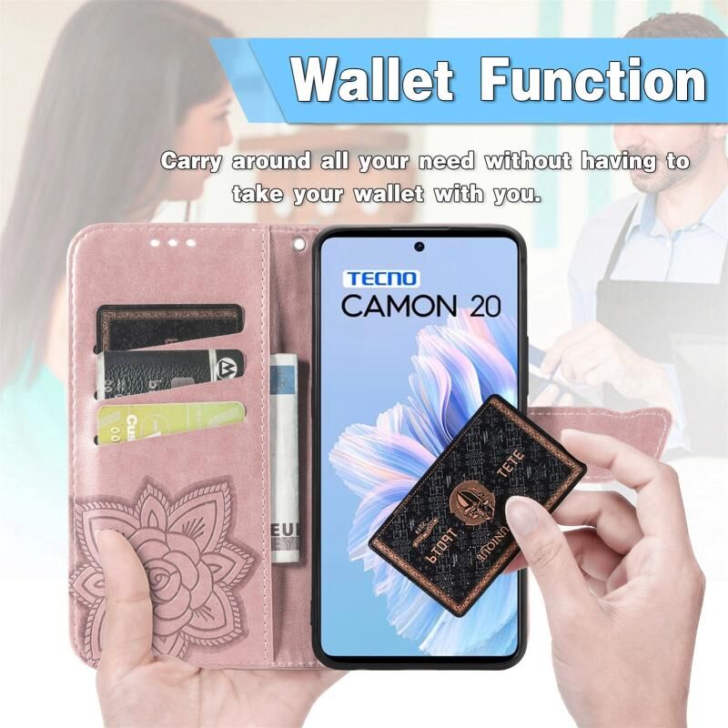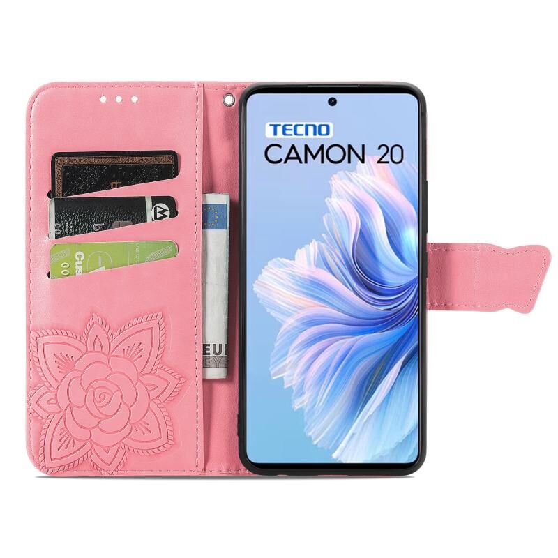 Θήκη τηλεφώνου Tecno Camon 20 Butterfly Love Flower Embossed Leather (Ροζ)