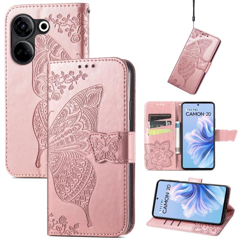 Θήκη τηλεφώνου Tecno Camon 20 Butterfly Love Flower Embossed Leather (Ροζ)