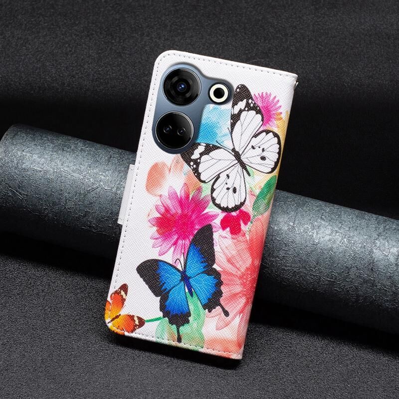 Θήκη τηλεφώνου από δέρμα με πολύχρωμο σχέδιο (πεταλούδες) για Tecno Camon 20/Camon 20 Pro 4G.