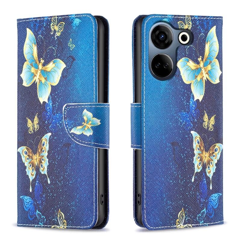 Θήκη τηλεφώνου από δέρμα με πολύχρωμο σχέδιο για Tecno Camon 20/Camon 20 Pro 4G (Χρυσή Πεταλούδα)