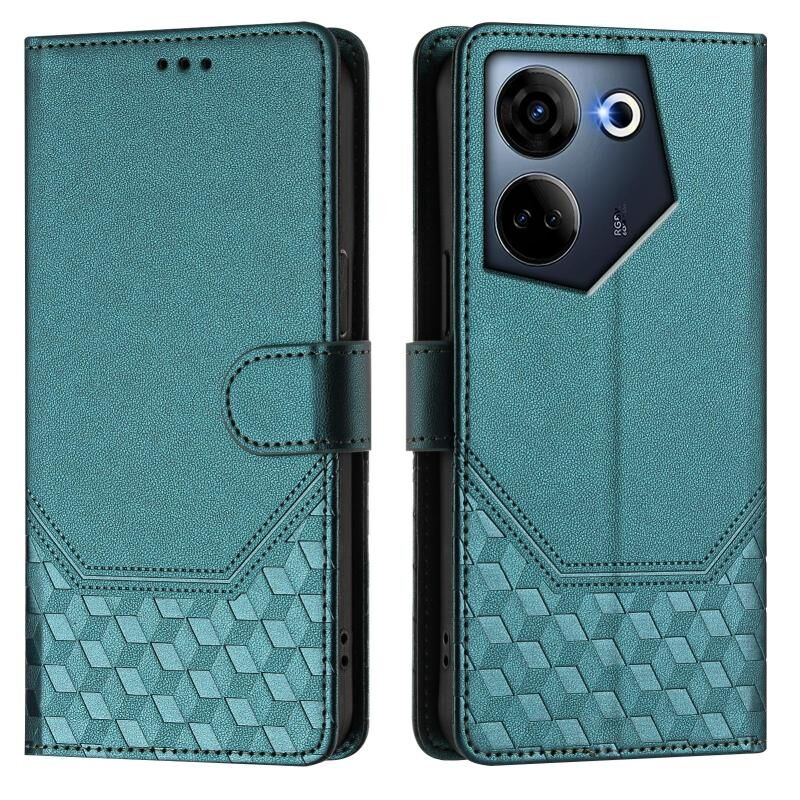 Για Tecno Camon 20 / Camon 20 Pro 4G Honeycomb ανάγλυφη RFID δερμάτινη θήκη τηλεφώνου (Πράσινο παγώνι)