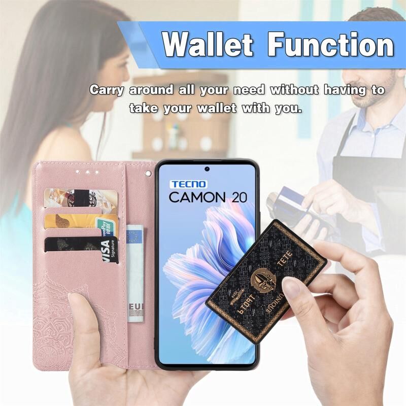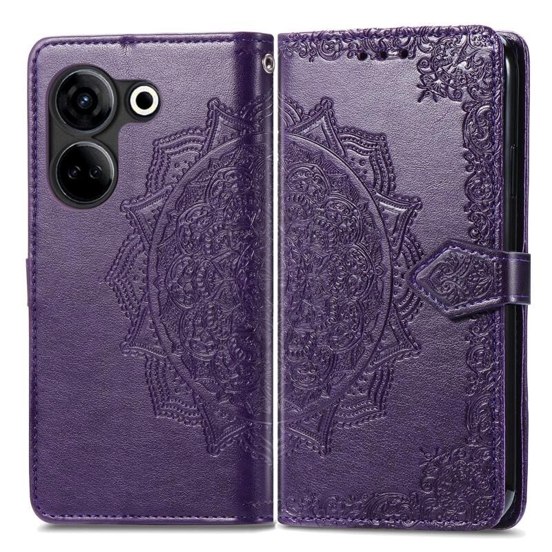 Για Tecno Camon 20 Mandala λουλούδι ανάγλυφο δερμάτινη θήκη τηλεφώνου (μωβ)