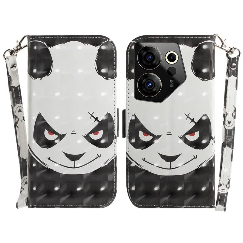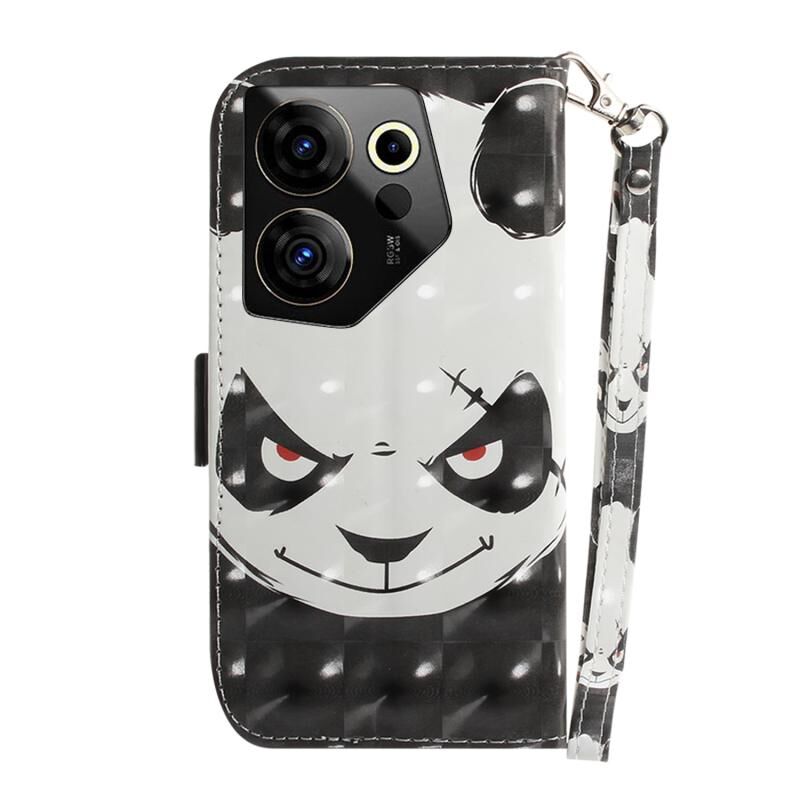 Θήκη τηλεφώνου δερμάτινη, οριζόντια, αναδιπλούμενη, με έγχρωμο 3D σχέδιο (θυμωμένη αρκούδα) για Tecno Camon 20 Premier 5G.