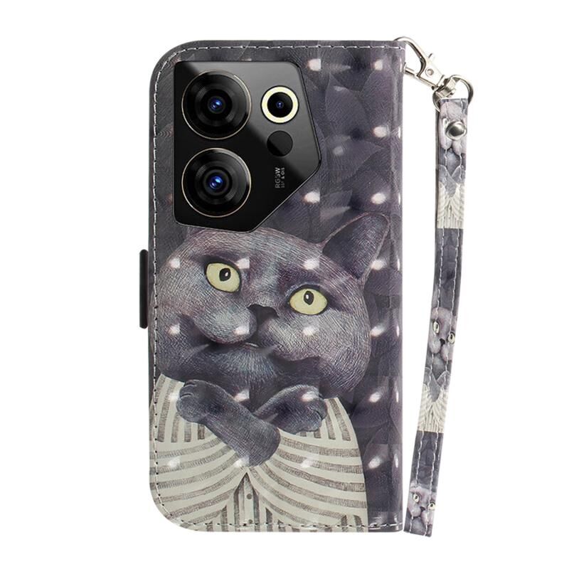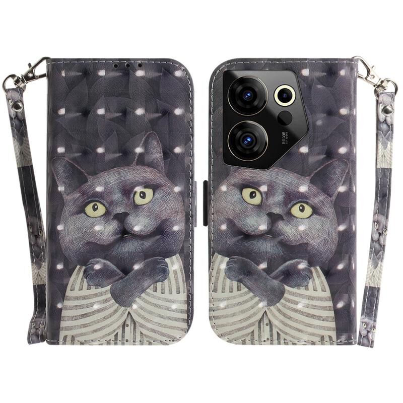 Θήκη τηλεφώνου δερμάτινη, οριζόντια, αναδιπλούμενη, με έγχρωμο 3D σχέδιο (Hug Cat) για Tecno Camon 20 Premier 5G.