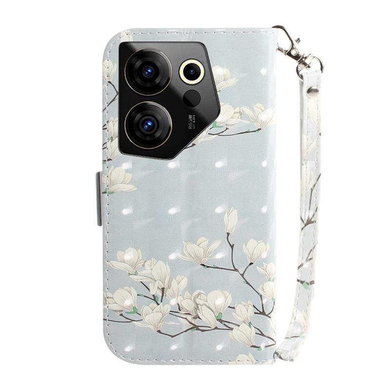 Θήκη τηλεφώνου δερμάτινη, οριζόντια, αναδιπλούμενη, με έγχρωμο 3D σχέδιο για Tecno Camon 20 Premier 5G (Μαγνολία)