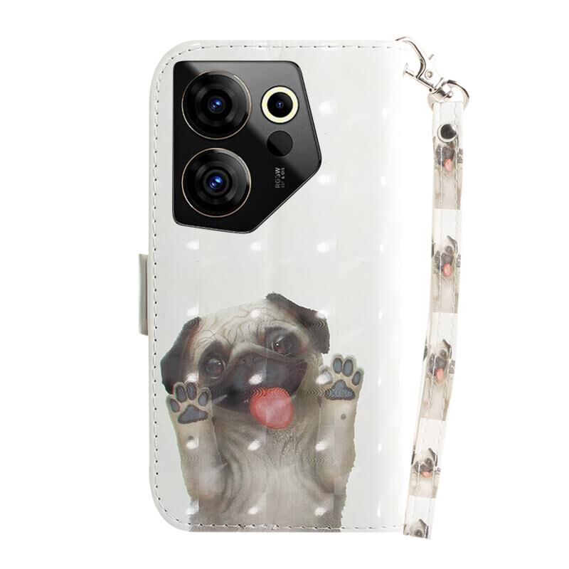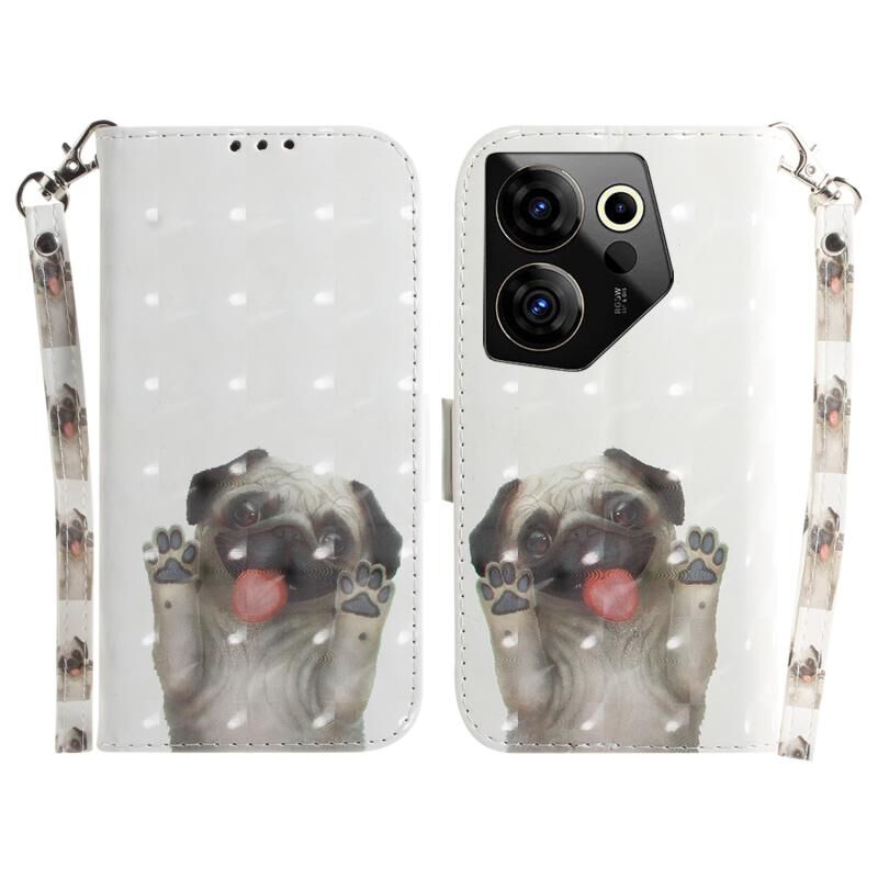 Θήκη τηλεφώνου δερμάτινη, οριζόντια, αναδιπλούμενη, με έγχρωμο 3D σχέδιο για Tecno Camon 20 Premier 5G (Pug)
