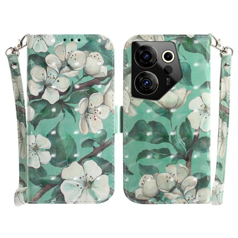 Θήκη τηλεφώνου δερμάτινη, οριζόντια, αναδιπλούμενη, με έγχρωμα 3D σχέδια για Tecno Camon 20 Premier 5G (Υδάτινο Λουλούδι)