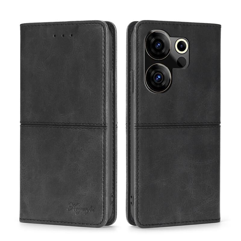Για Tecno Camon 20 Premier 5G Θήκη τηλεφώνου από δέρμα αγελάδας με υφή μαγνητικού δέρματος (Μαύρο)