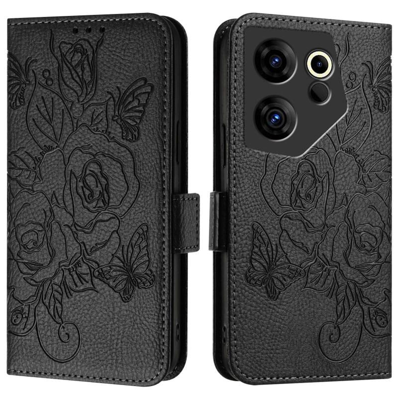 Θήκη τηλεφώνου από δέρμα με ανάγλυφο σχέδιο και προστασία RFID κατά του κλοπής για Tecno Camon 20 Premier 5G (Μαύρο)