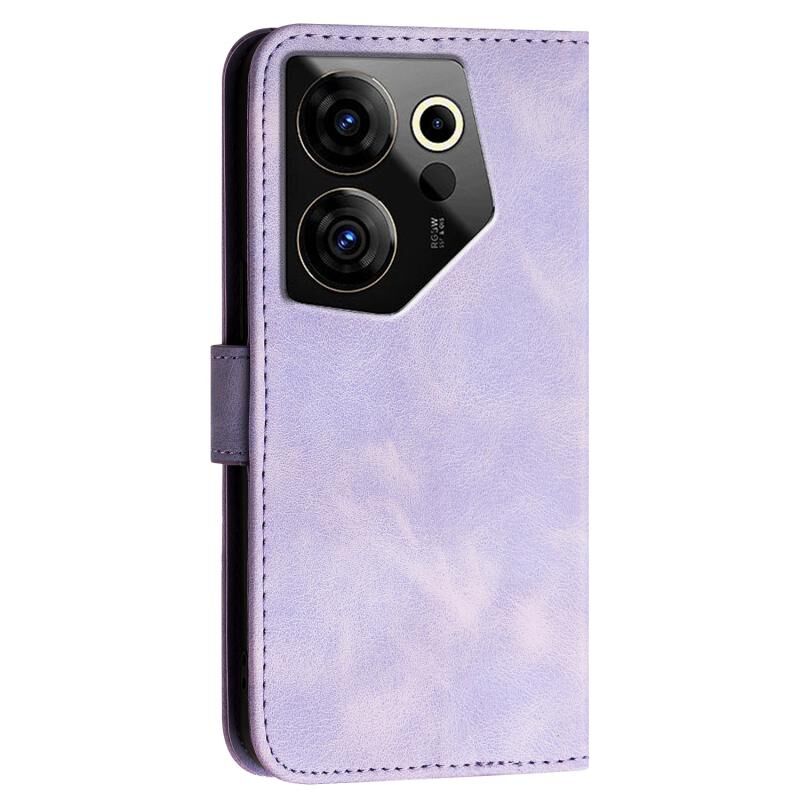 For Tecno Camon 20 Premier 5G Grid Butterfly Embossed Pattern Leather Phone Case with Lanyard(Light Purple)