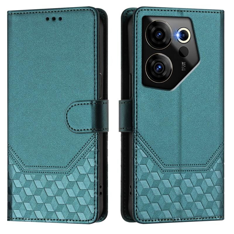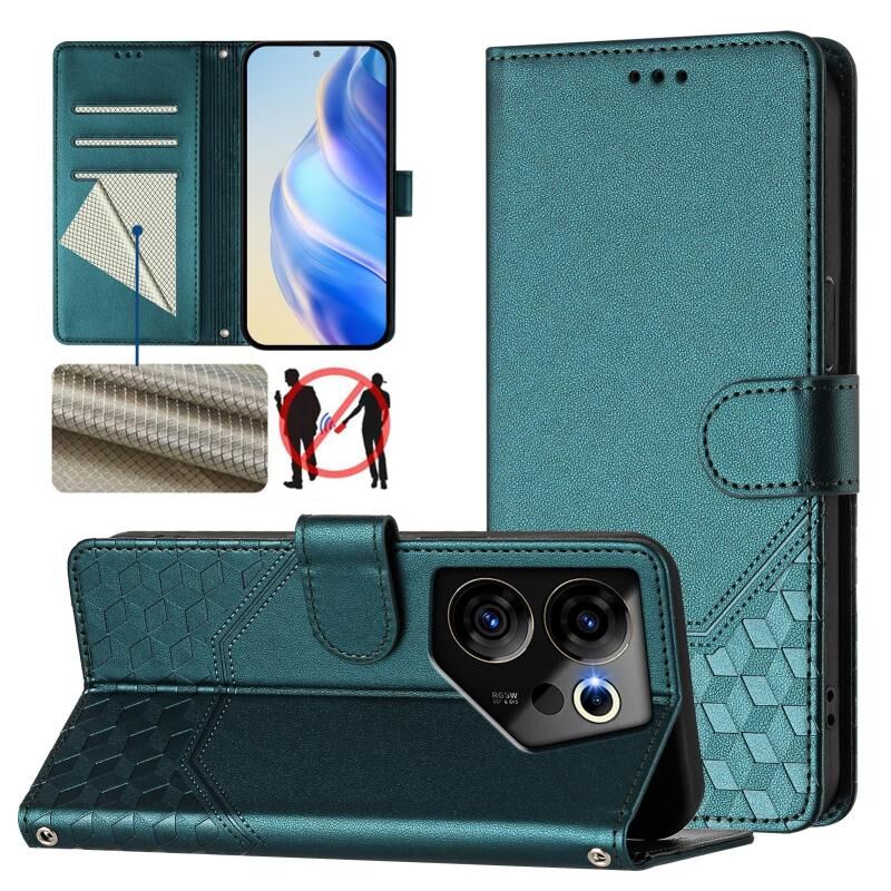 Για Tecno Camon 20 Premier 5G κηρήθρα ανάγλυφη RFID δερμάτινη θήκη τηλεφώνου (Πράσινο παγώνι)