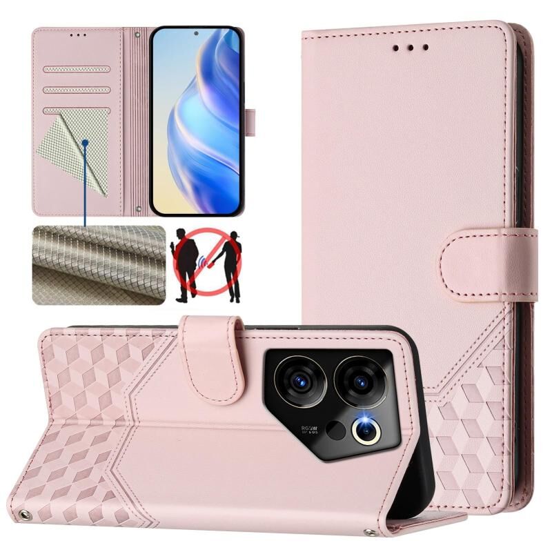 Για Tecno Camon 20 Premier 5G κηρήθρα ανάγλυφη RFID δερμάτινη θήκη τηλεφώνου (ροζ)