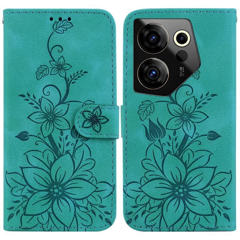 Θήκη τηλεφώνου Tecno Camon 20 Premier 5G από δέρμα με ανάγλυφο λουλουδιού Lily (Πράσινο)