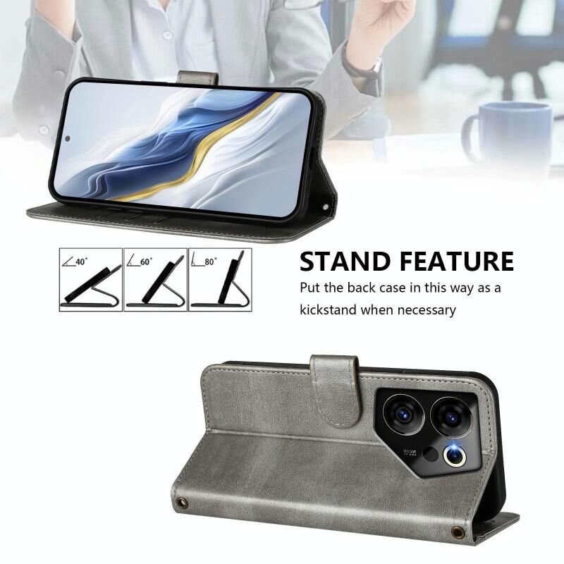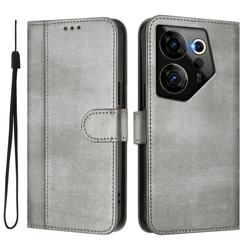 For Tecno Camon 20 Premier 5G Line Splicing Buckle Retro Leather Phone Case(Grey)
