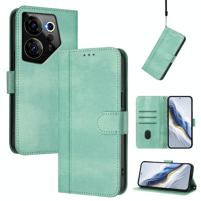 For Tecno Camon 20 Premier 5G Line Splicing Buckle Retro Leather Phone Case(Mint)