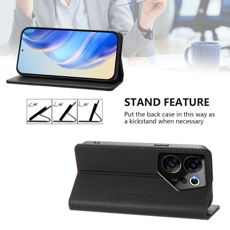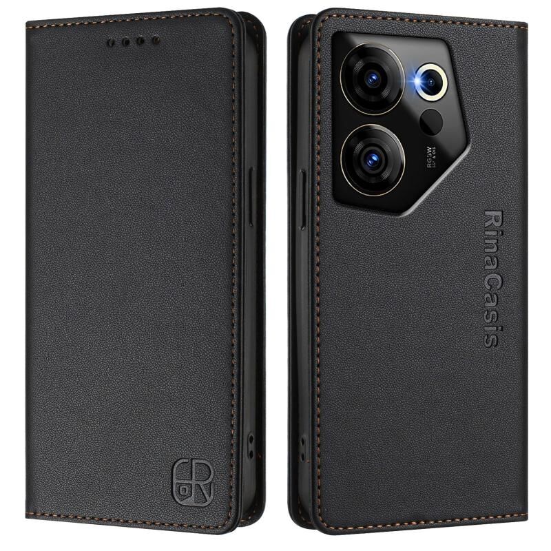 For Tecno Camon 20 Premier 5G RC01 Dual-Folded Magnetic Suction RFID Leather Phone Case(Black)