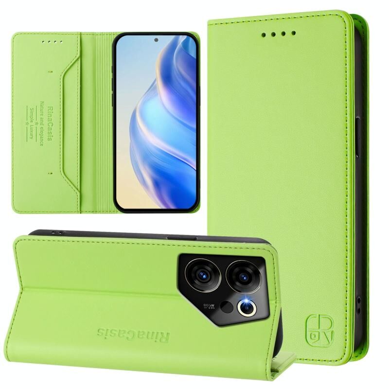 For Tecno Camon 20 Premier 5G RC01 Dual-Folded Magnetic Suction RFID Leather Phone Case(Grass Green)