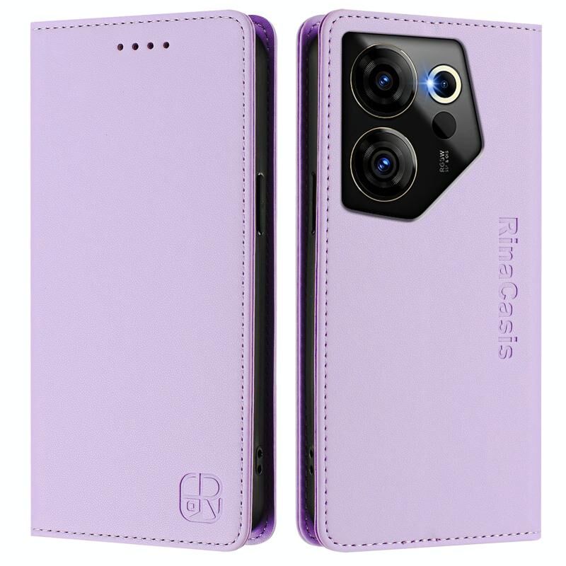 For Tecno Camon 20 Premier 5G RC01 Dual-Folded Magnetic Suction RFID Leather Phone Case(Light Purple)