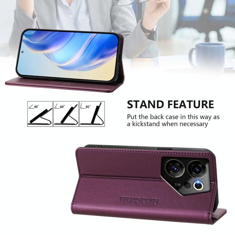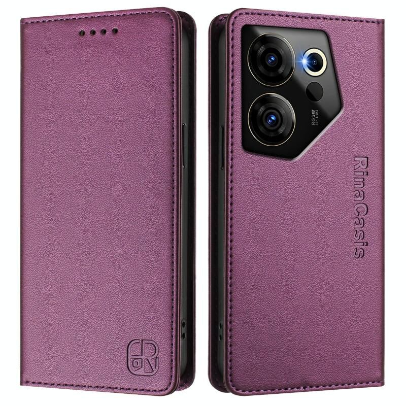 For Tecno Camon 20 Premier 5G RC01 Dual-Folded Magnetic Suction RFID Leather Phone Case(Violet)