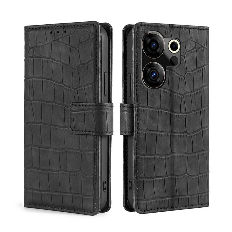 For Tecno Camon 20 Premier 5G Skin Feel Crocodile Magnetic Clasp Leather Phone Case(Black)
