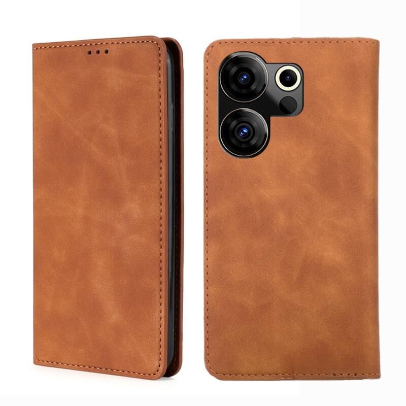Για Tecno Camon 20 Premier 5G Skin Feel μαγνητική δερμάτινη θήκη τηλεφώνου (ανοιχτό καφέ)