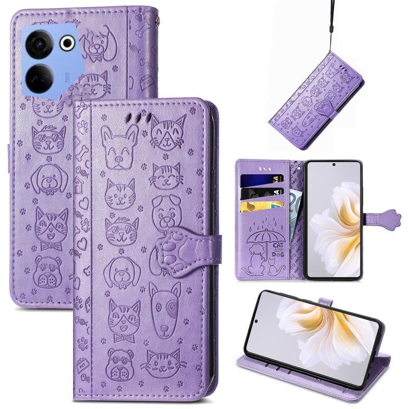 Θήκη τηλεφώνου από ανάγλυφο δέρμα για Tecno Camon 20 Premier με σχέδιο γάτας και σκύλου (Ροζ)