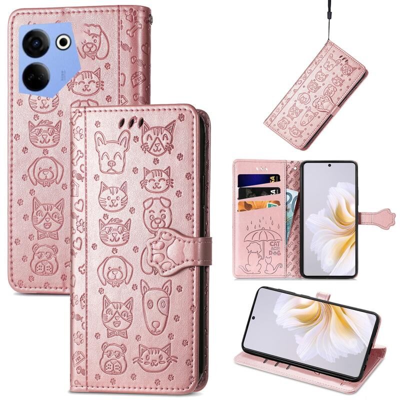 Θήκη τηλεφώνου από ανάγλυφο δέρμα για Tecno Camon 20 Premier με σχέδιο γάτας και σκύλου (Ροζ)