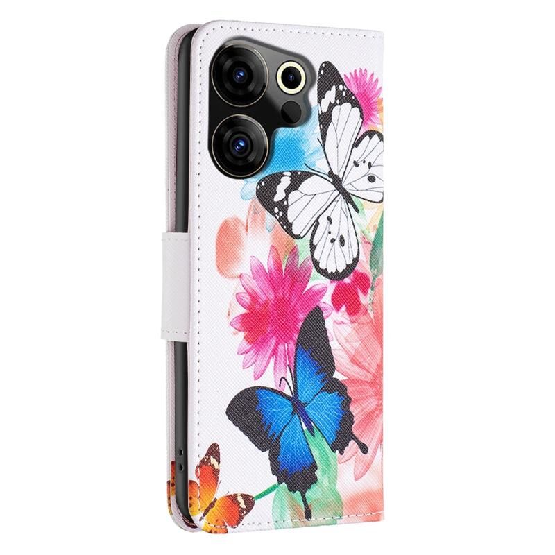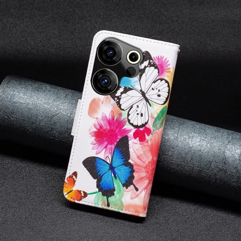 Θήκη τηλεφώνου από δέρμα με έγχρωμο σχέδιο (πεταλούδες) για Tecno Camon 20 Premier.