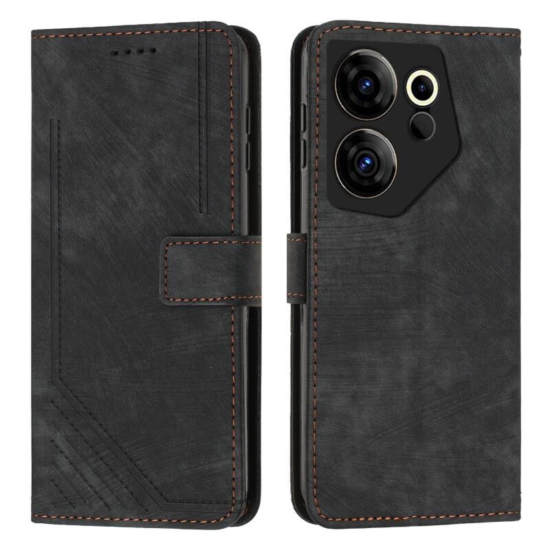 Για Tecno Camon 20 Premier Skin Feel Stripe Pattern δερμάτινη θήκη τηλεφώνου με κορδόνι (Μαύρο)