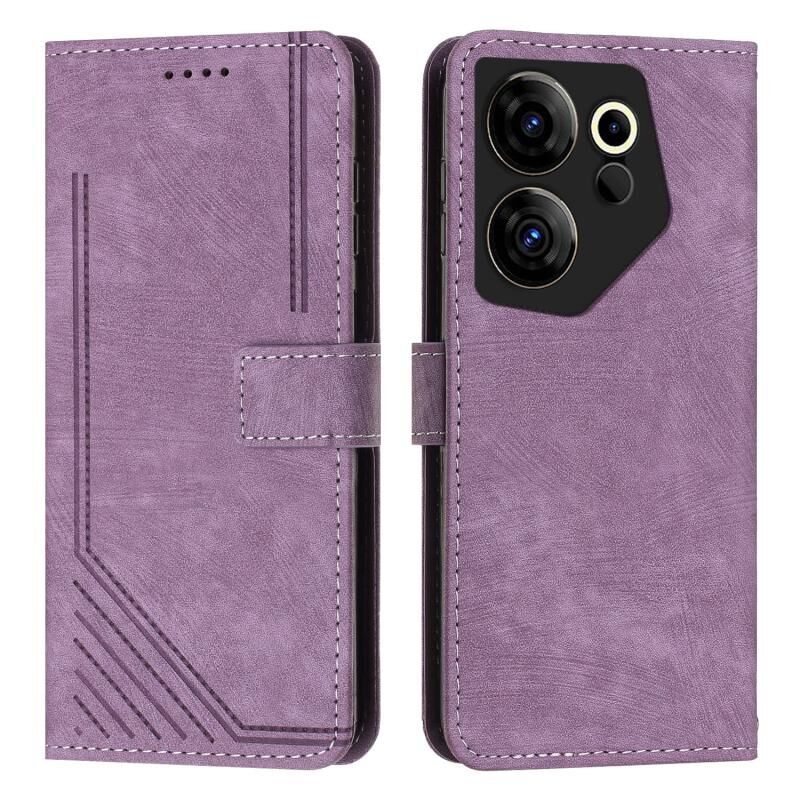 Για Tecno Camon 20 Premier Skin Feel Stripe Pattern δερμάτινη θήκη τηλεφώνου με κορδόνι (μωβ)