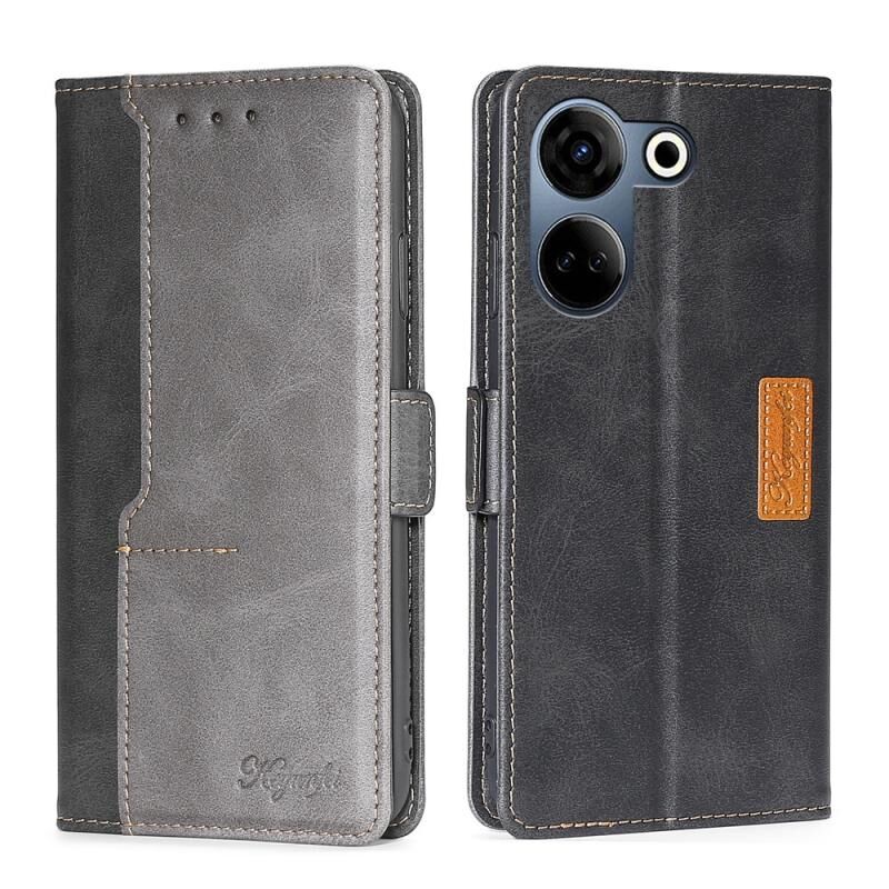 Για Tecno Camon 20 Pro 4G αντίθεση χρώμα πλευρά πόρπη δερμάτινη θήκη τηλεφώνου (μαύρο + γκρι)