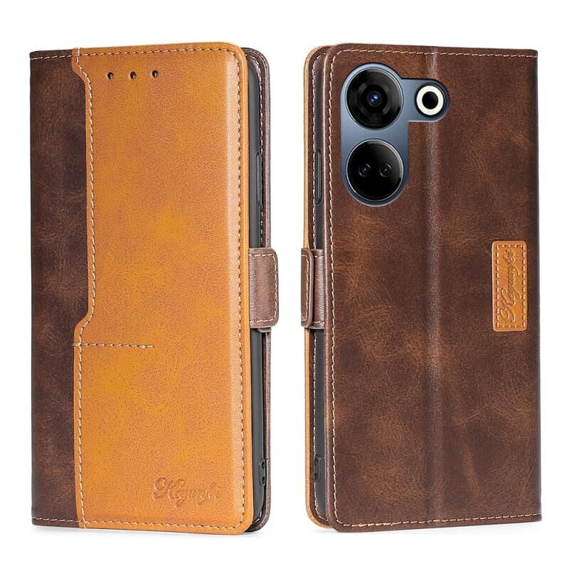 Για Tecno Camon 20 Pro 4G αντίθεση χρώμα πλευρά πόρπη δερμάτινη θήκη τηλεφώνου (σκούρο καφέ + χρυσό)