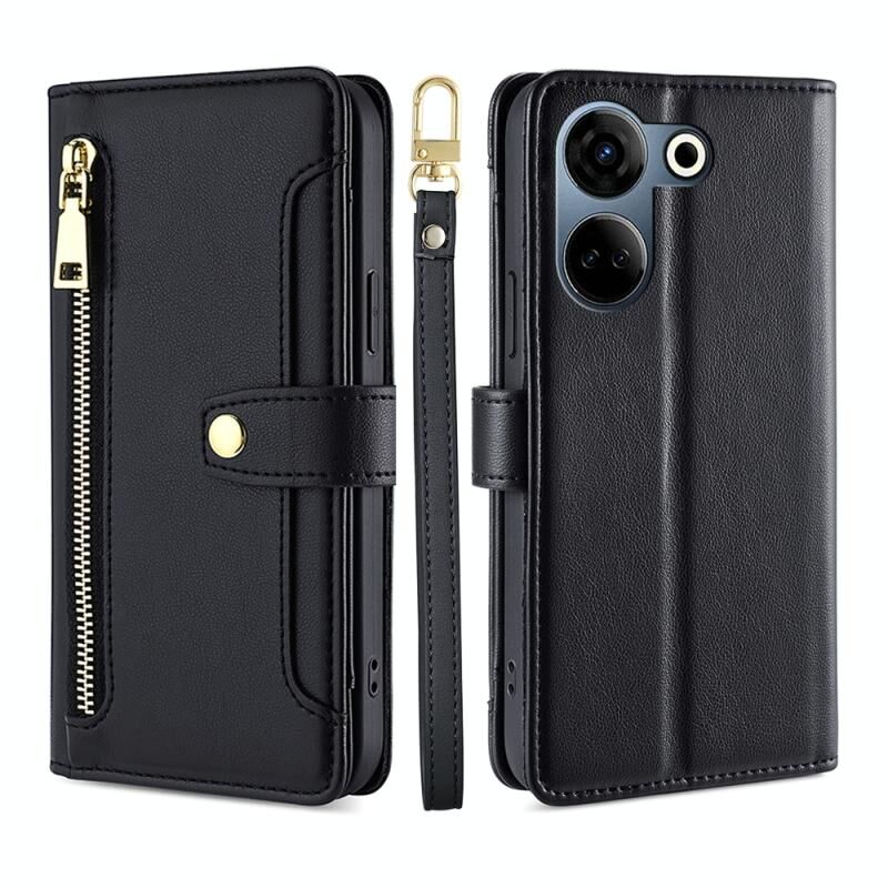 Θήκη Τηλεφώνου Tecno Camon 20 Pro 4G από Δέρμα με Υφή Προβάτου, Διαγώνιο Φερμουάρ και Πορτοφόλι (Μαύρο)