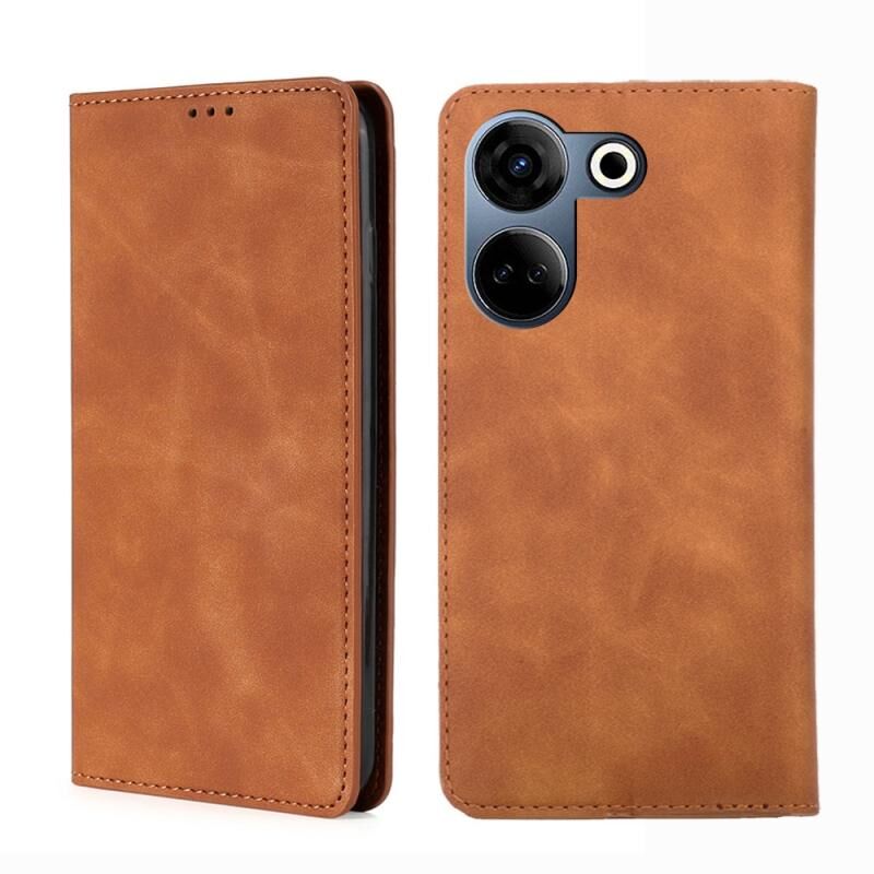 Για Tecno Camon 20 Pro 4G Skin Feel μαγνητική δερμάτινη θήκη τηλεφώνου (ανοιχτό καφέ)