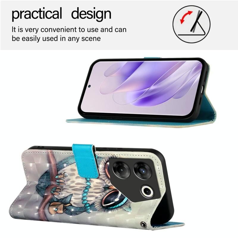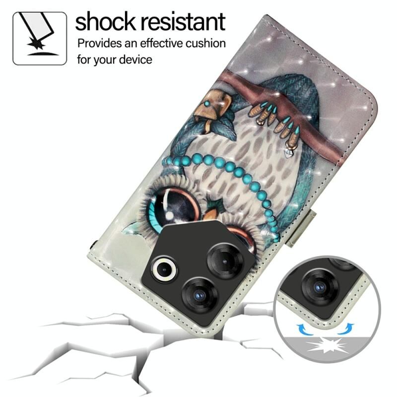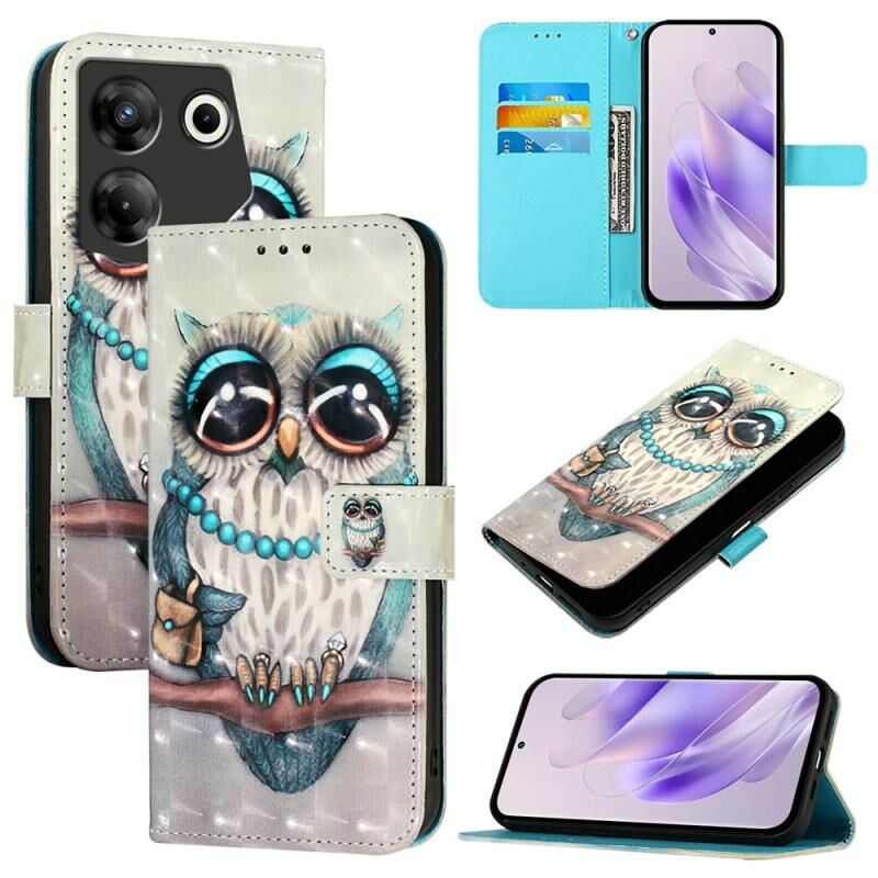 Θήκη τηλεφώνου από δέρμα με οριζόντιο άνοιγμα και τρισδιάστατη ζωγραφική για Tecno Camon 20 Pro 5G (Γκρι κουκουβάγια)