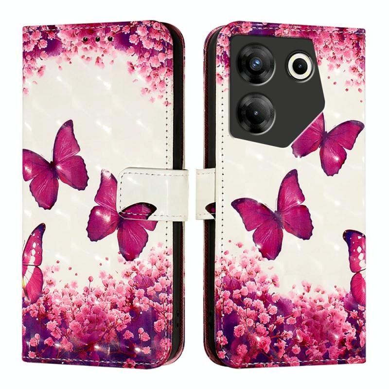 Θήκη τηλεφώνου από δέρμα με οριζόντιο άνοιγμα και τρισδιάστατη ζωγραφική για Tecno Camon 20 Pro 5G (Ροζ Πεταλούδα)