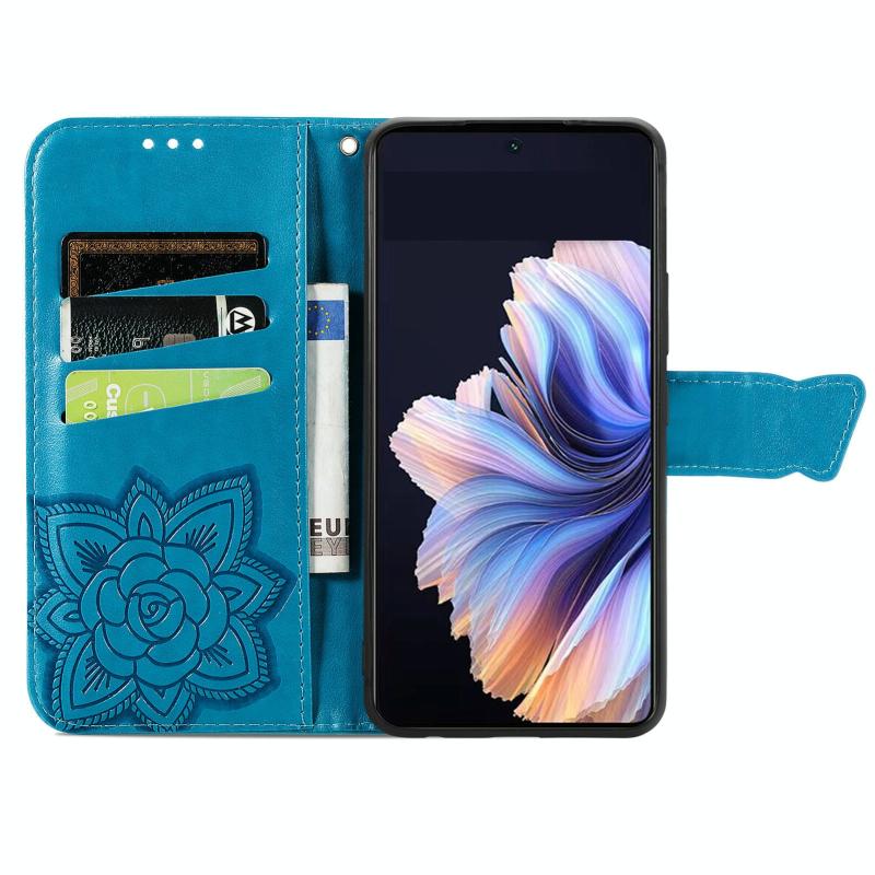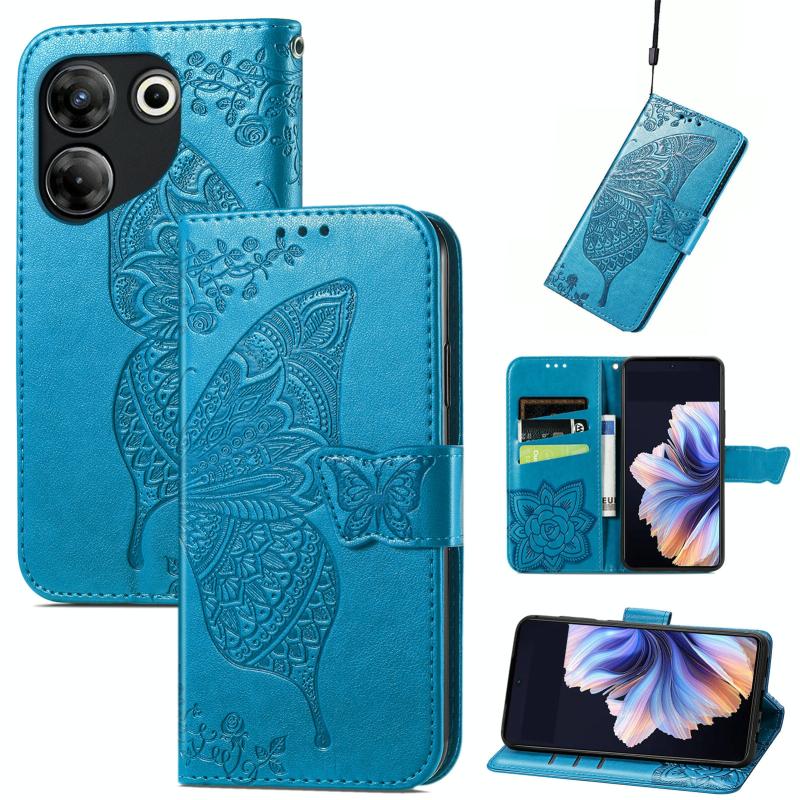 For Tecno Camon 20 Pro 5G Butterfly Love Flower Embossed Leather Phone Case(Blue)