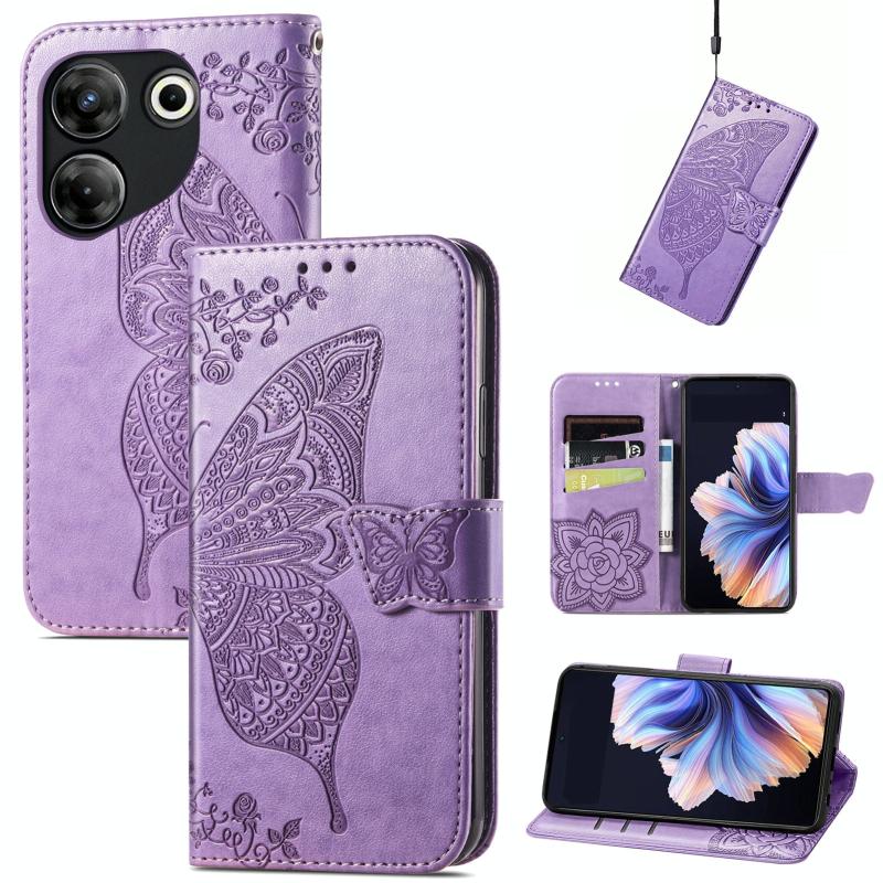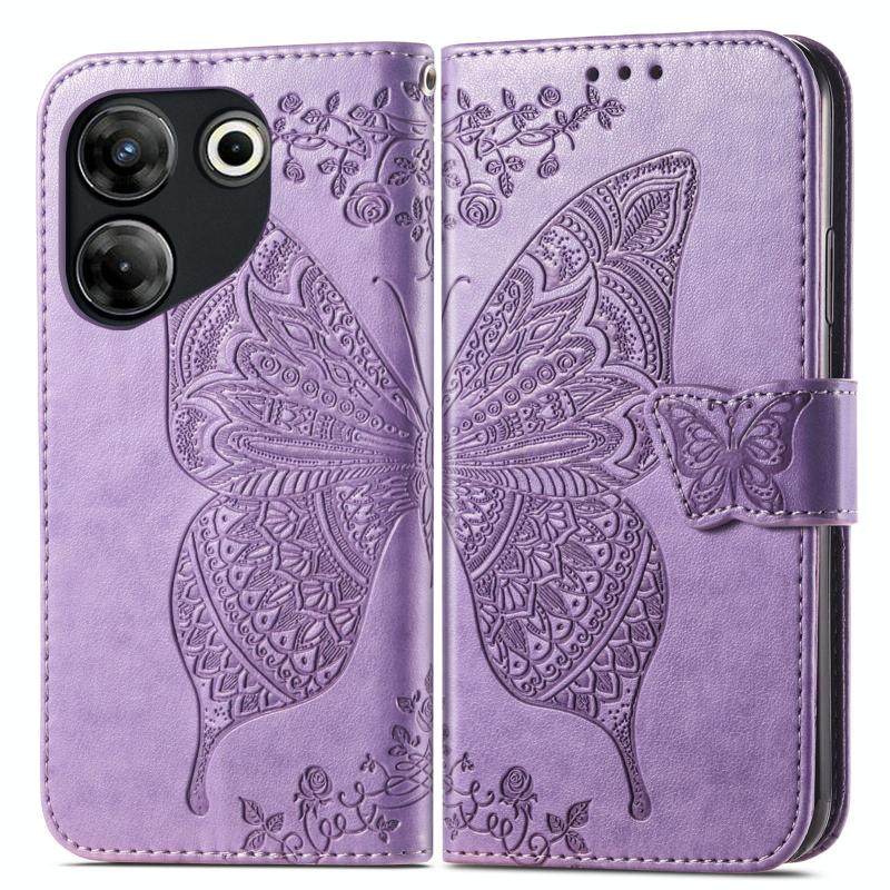 For Tecno Camon 20 Pro 5G Butterfly Love Flower Embossed Leather Phone Case(Light Purple)