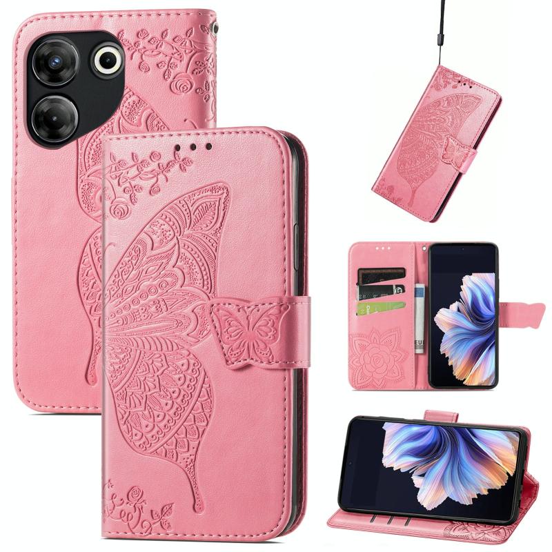 For Tecno Camon 20 Pro 5G Butterfly Love Flower Embossed Leather Phone Case(Pink)