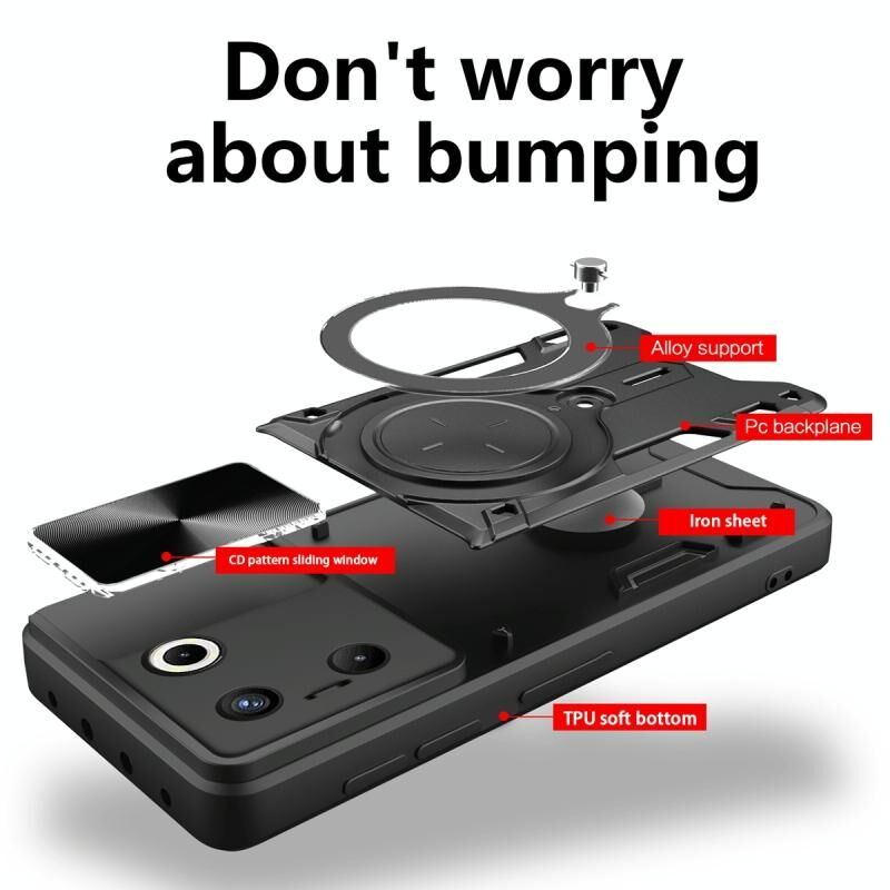 Θήκη τηλεφώνου για Tecno Camon 20 Pro 5G με υφή CD, συρόμενη προστασία κάμερας Camshield και μαγνητική βάση (Ροζ)