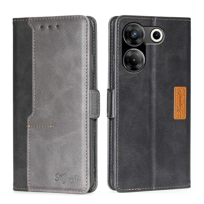 Για Tecno Camon 20 Pro 5G Contrast χρώμα πλευρά πόρπη δερμάτινη θήκη τηλεφώνου (μαύρο + γκρι)