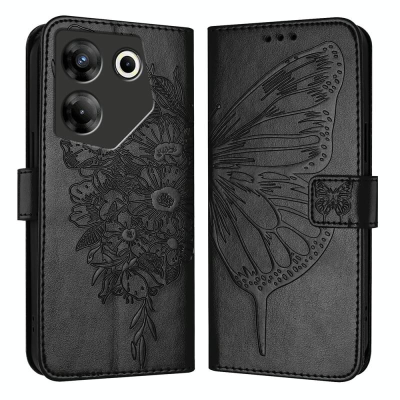 Θήκη τηλεφώνου από δέρμα με ανάγλυφο σχέδιο πεταλούδας για Tecno Camon 20 Pro 5G (Μαύρο)