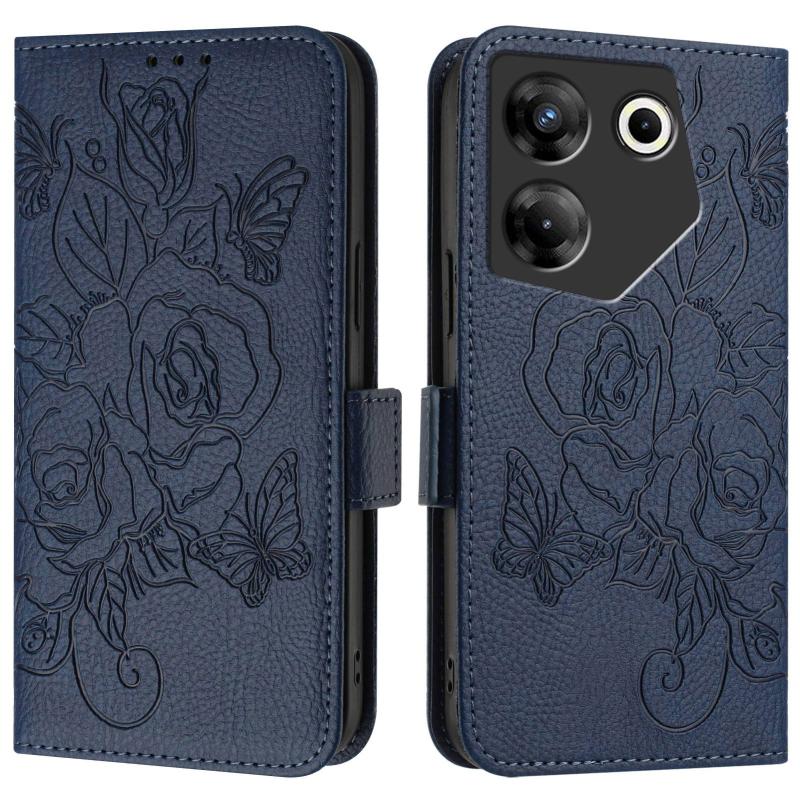 For Tecno Camon 20 Pro 5G Embossed Rose RFID Anti-theft Leather Phone Case(Dark Blue)