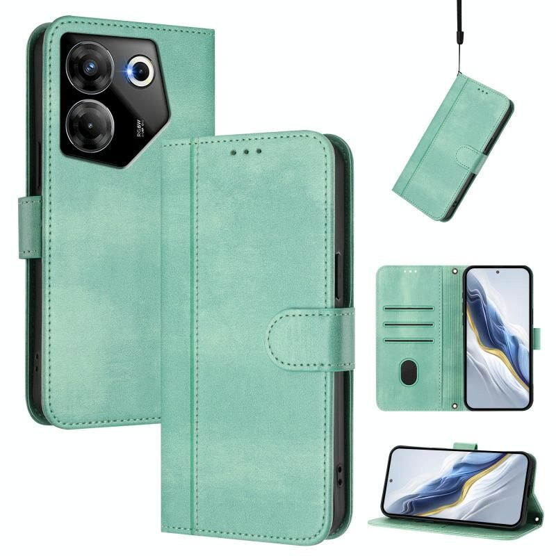 Θήκη τηλεφώνου Tecno Camon 20 Pro 5G, Γραμμή Σύνδεσης με Αγκράφα, Ρετρό Δερμάτινη (Μέντα)