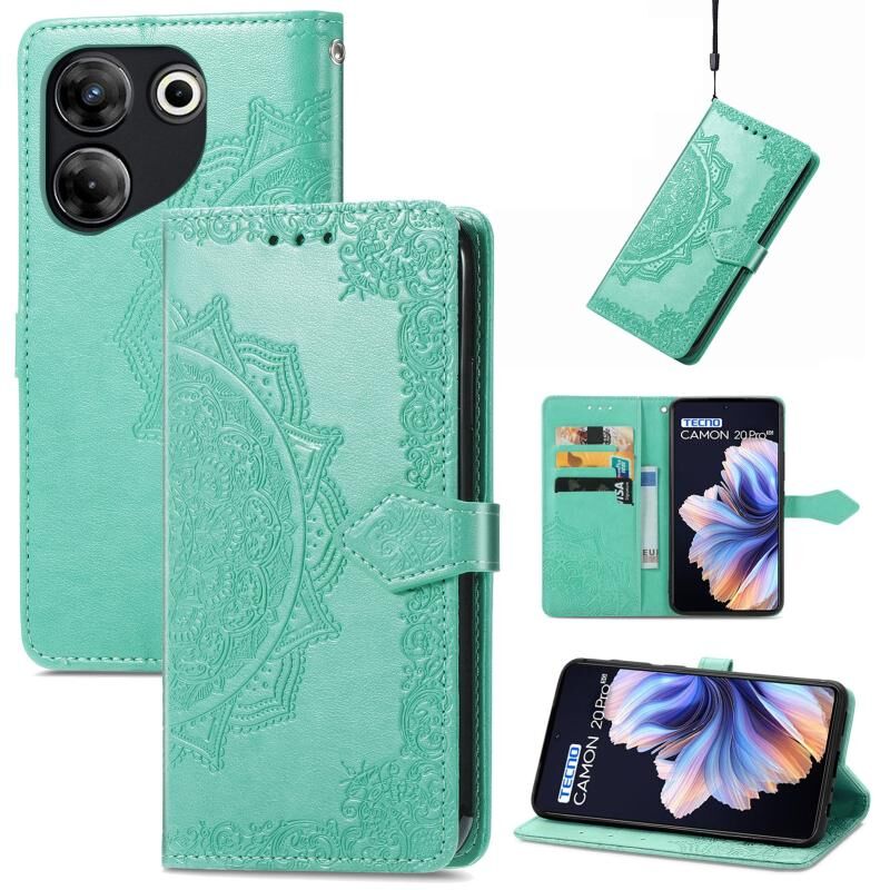 Για Tecno Camon 20 Pro 5G Mandala λουλούδι ανάγλυφο δερμάτινη θήκη τηλεφώνου (πράσινο)