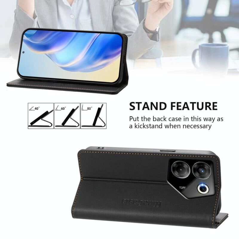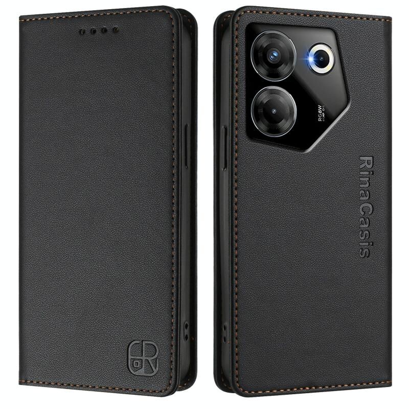 For Tecno Camon 20 Pro 5G RC01 Dual-Folded Magnetic Suction RFID Leather Phone Case(Black)