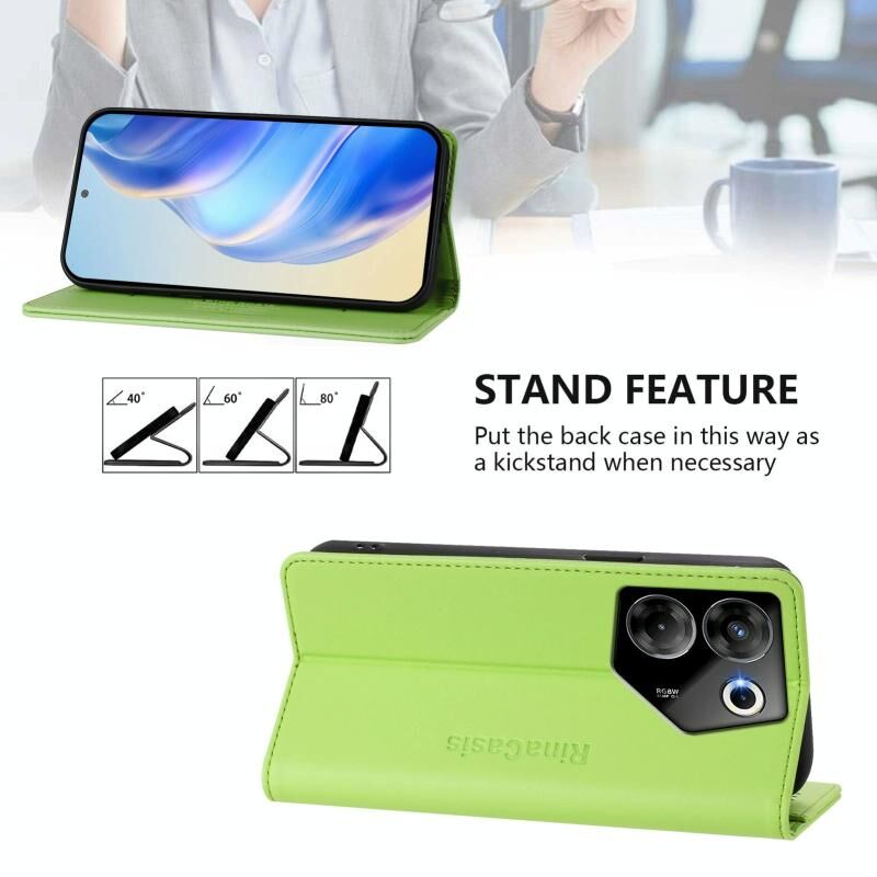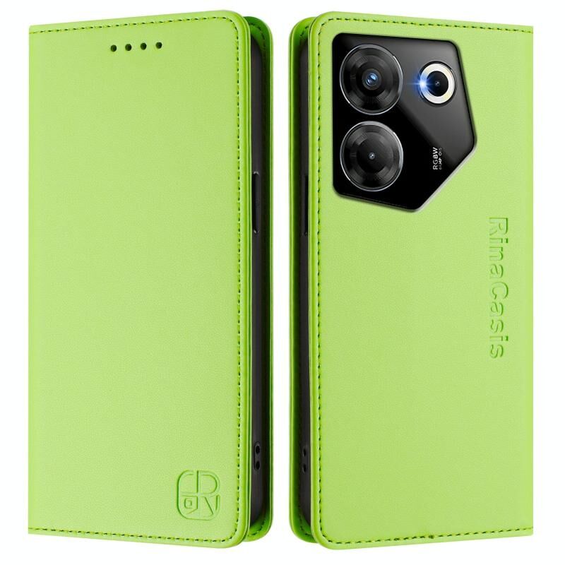 For Tecno Camon 20 Pro 5G RC01 Dual-Folded Magnetic Suction RFID Leather Phone Case(Grass Green)