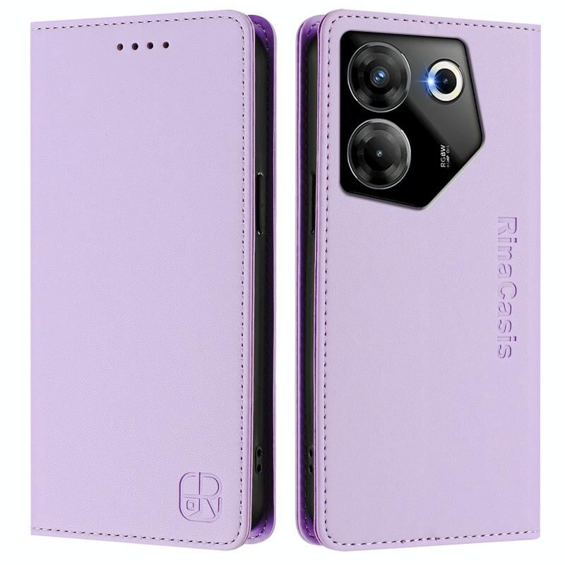 For Tecno Camon 20 Pro 5G RC01 Dual-Folded Magnetic Suction RFID Leather Phone Case(Light Purple)