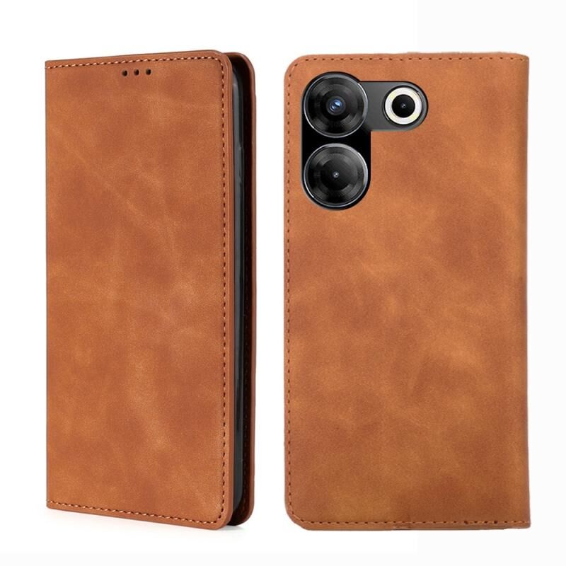 Για Tecno Camon 20 Pro 5G Skin Feel μαγνητική δερμάτινη θήκη τηλεφώνου (ανοιχτό καφέ)