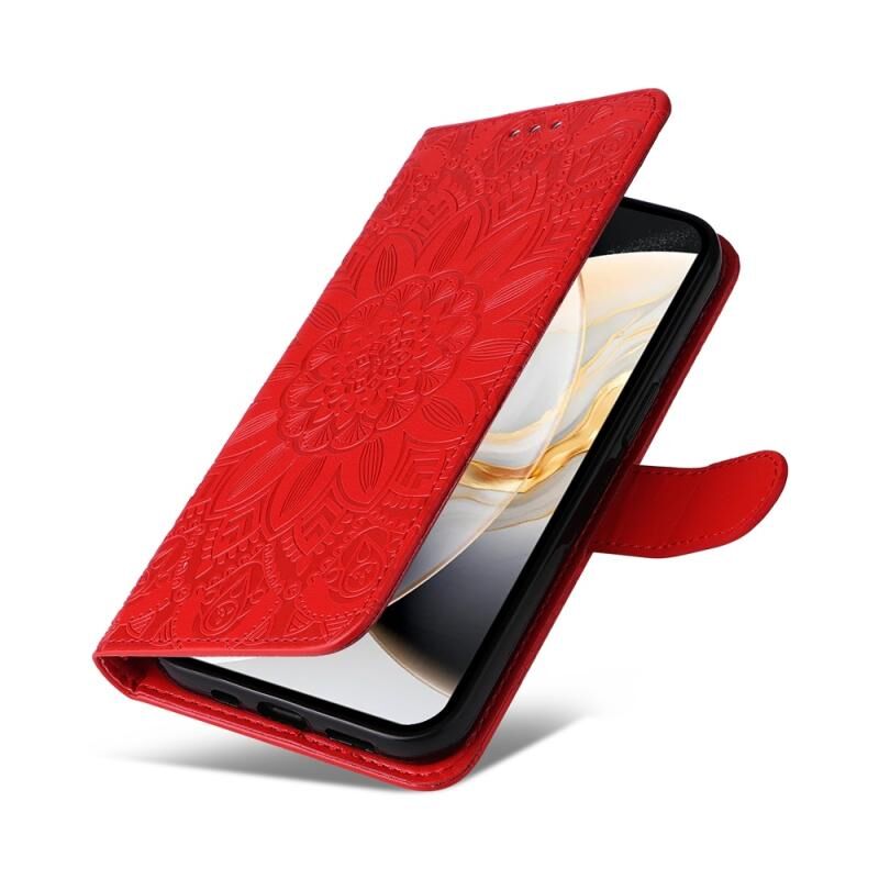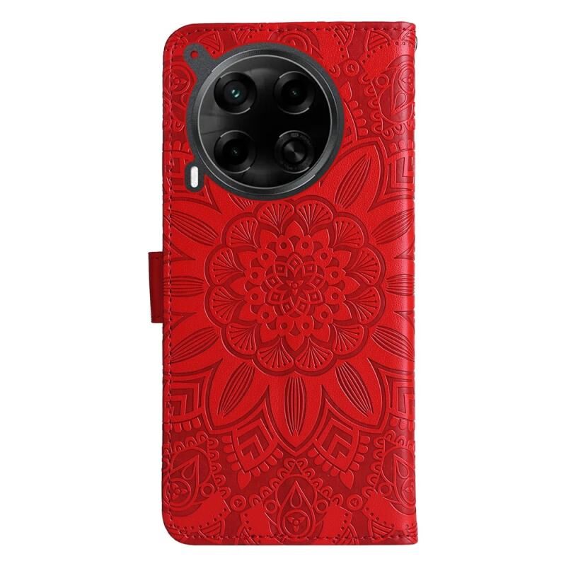 Θήκη τηλεφώνου από δέρμα με ανάγλυφο ηλίανθο για Tecno Camon 30 4G / 5G (Κόκκινο)